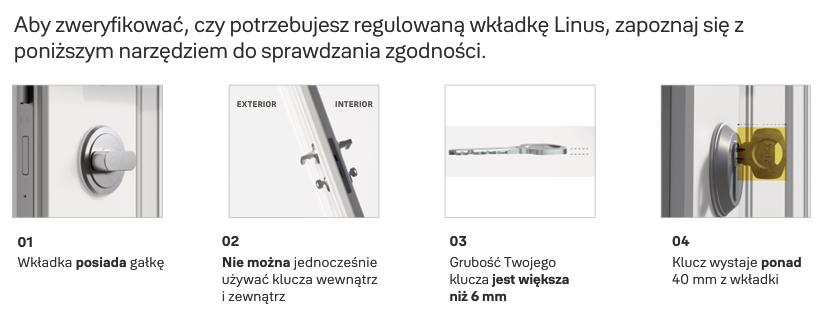 W zależności od tego, jaki rodzaj wkładki euro znajduje się obecnie w Twoich drzwiach, może zajść potrzeba jej wymiany, aby była kompatybilna z Linus® Smart Lock.