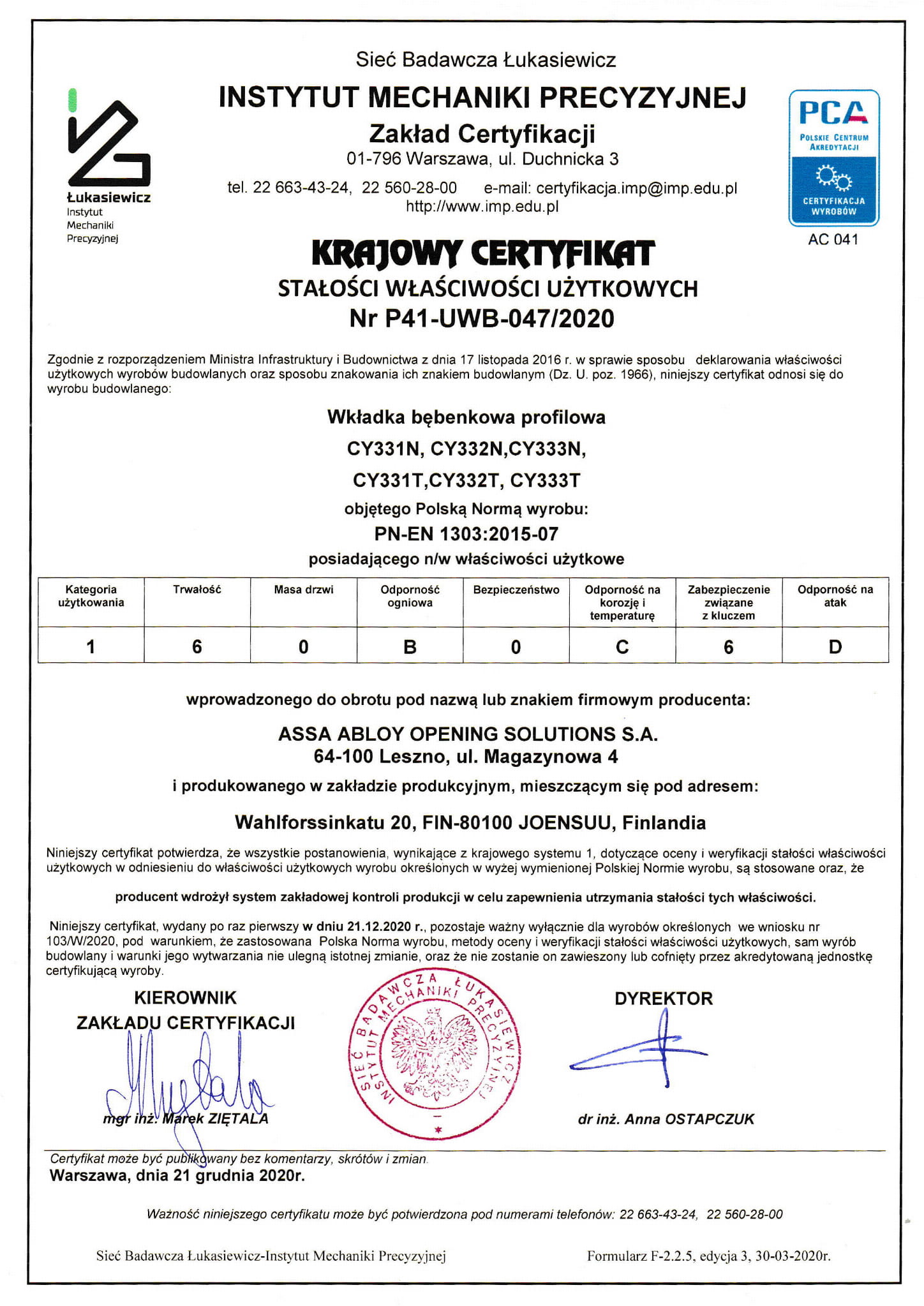 Możliwość stosowania w drzwiach przeciwpożarowych