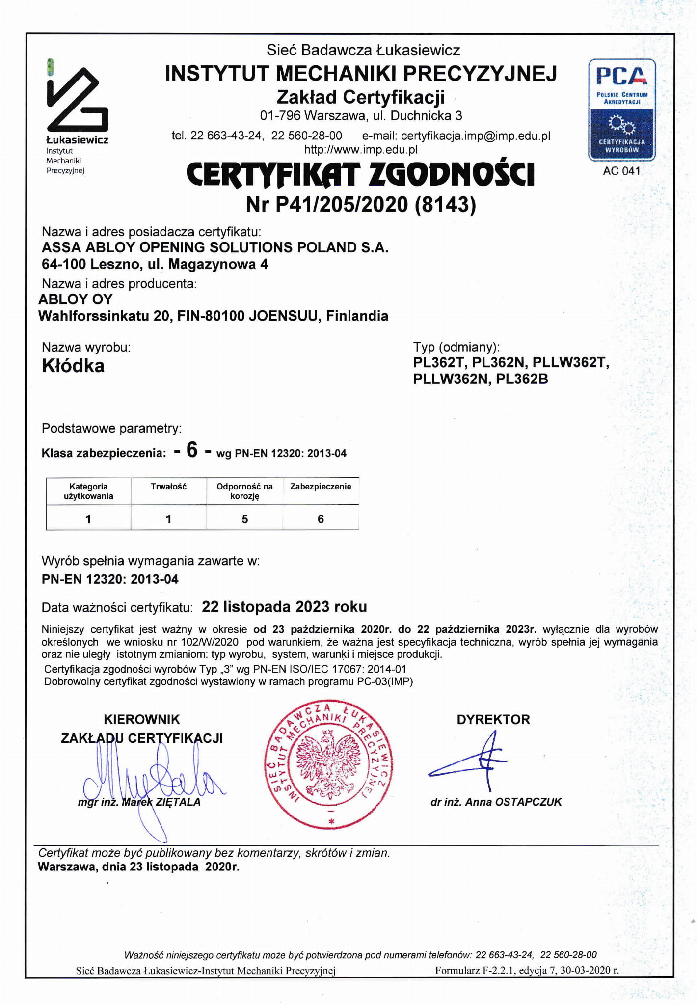 Abloy PL362 to najmocniejsza kłódka, która znajdzie swoje zastosowanie w miejscach gdzie wymagany jest bardzo wysoki stopień zabezpieczenia przed włamaniem, takich jak kontenery, wagony kolejowe, samochody ciężarowe, ciężarówki, ciężkie drzwi przesuwne. Kłódka posiada konstrukcję chroniącą pałąk, dzięki czemu złamanie zamka narzędziami tnącymi i wykręcającymi jest praktycznie niemożliwe. Korpus kłódki wykonany jest ze stali utwardzanej, a materiał pałąka ze stali borowej. Kłódka posiada najwyższą klasę zabezpieczeń 6, wydaną przez instytut mechaniki precyzyjnej zgodnie z europejskimi normami PN-EN12320:2013-04