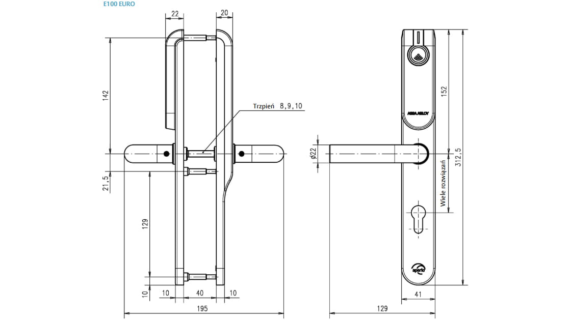 Okucie do drzwi Aperio E100 bez pin pada