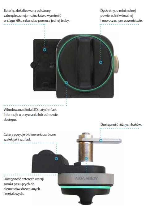 Dzięki Aperio KL100 szafki, szuflady i inne elementy stają się częścią Twojego systemu kontroli dostępu. To proste, bezprzewodowe urządzenie blokujące umożliwia monitorowanie, filtrowanie, nadawanie i cofanie dostępu z tego samego systemu, którego używasz do kontroli dostępu do drzwi.
