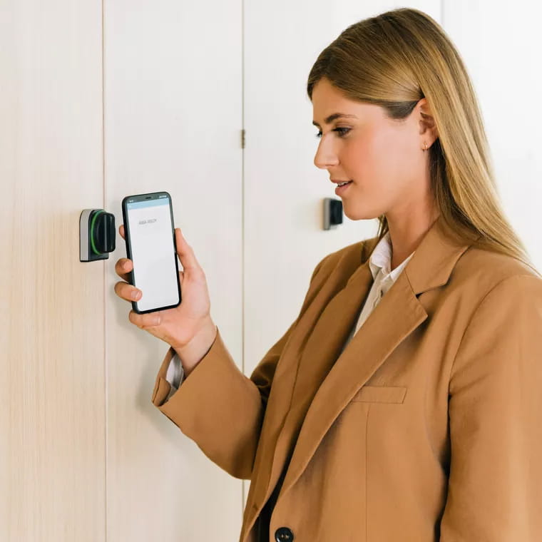 Mierząc zaledwie 57 × 63 mm, Aperio KL100 jest prawie niewidoczny — i komponuje się z każdym projektem pomieszczenia.