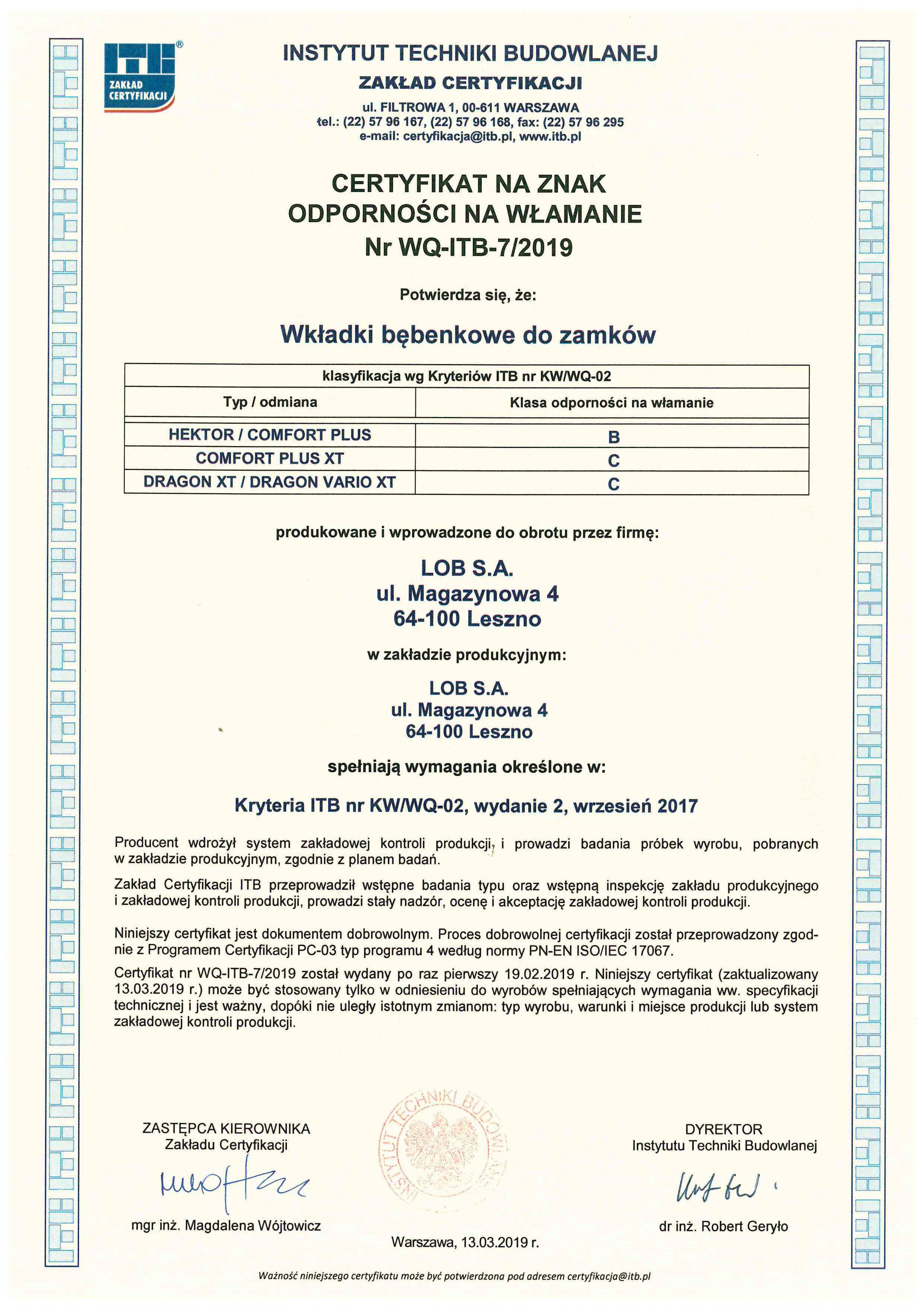 Wkładki bębenkowe LOB Comfort Plus XT należą do najczęściej wybieranych wkładek Master Key polskiej marki LOB, będącej częścią międzynarodowego koncernu Assa Abloy. Produkt spełnia najwyższe wymagania europejskiej normy PN-EN 1303:2015-17
