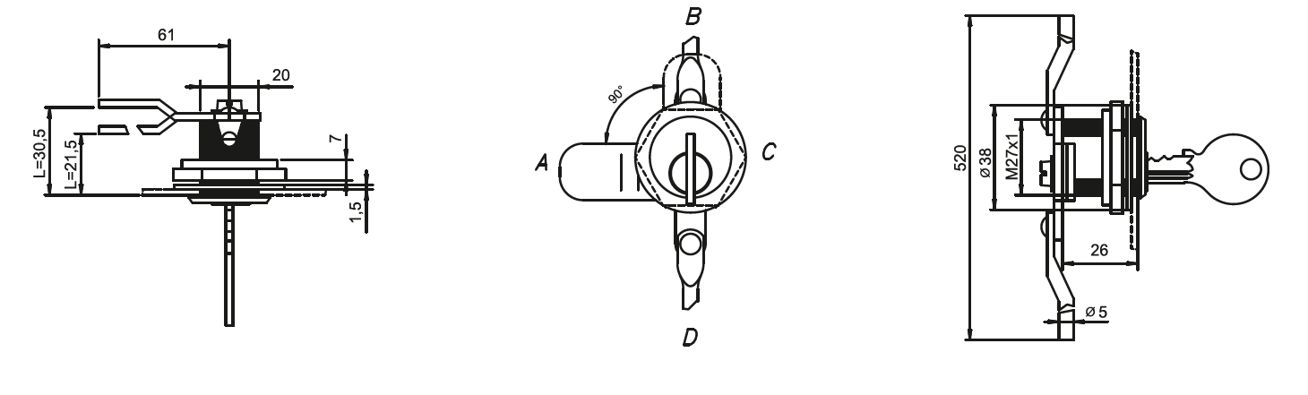 Wymiary montażowe (średnica otworu oraz długość rygla/zabieraka) → dostępne na zdjęciach w galerii.