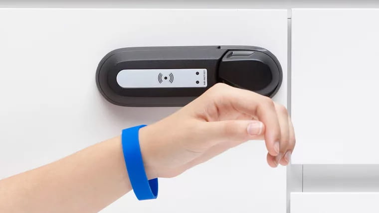 Gdy szafka nie jest używana, jej pokrętło obraca się swobodnie, aby zapobiec sforsowaniu zamka. Po okazaniu autoryzowanego poświadczenia szafka otwiera się. Możliwe jest również zaplanowanie automatycznego otwierania o określonych godzinach.